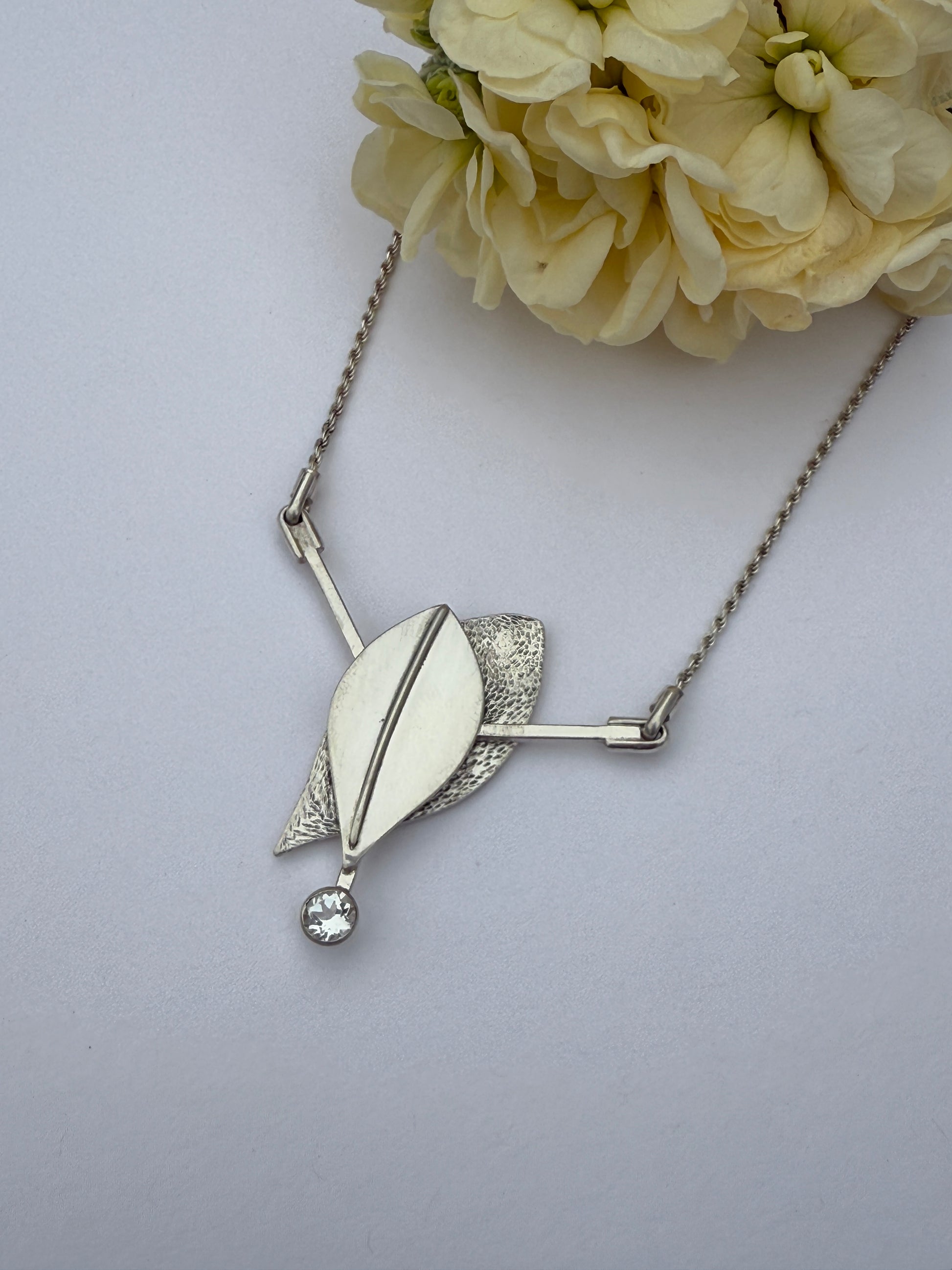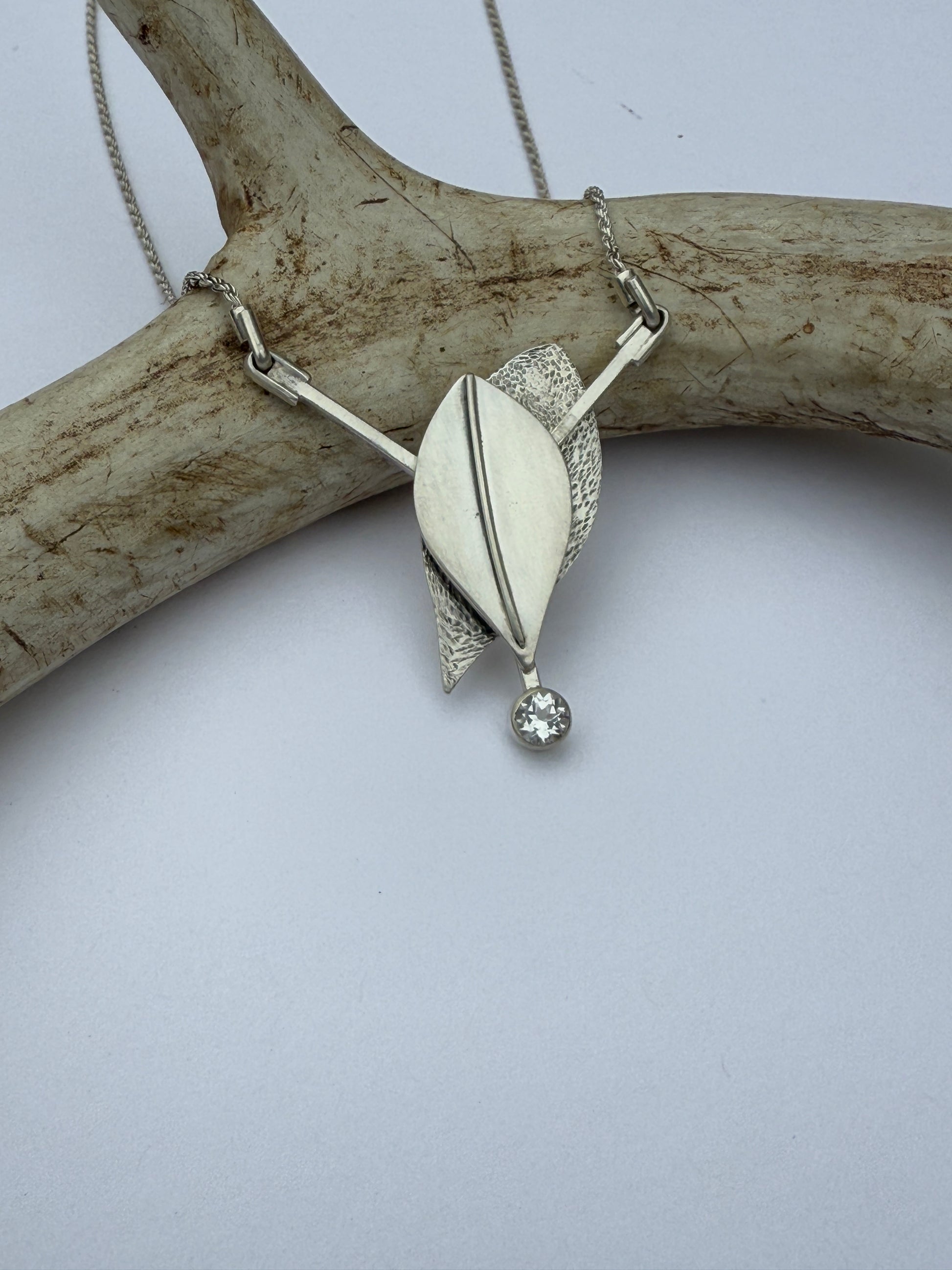 Radiant Renewal Necklace: Sterling Silver & White Topaz Leaf Pendant
