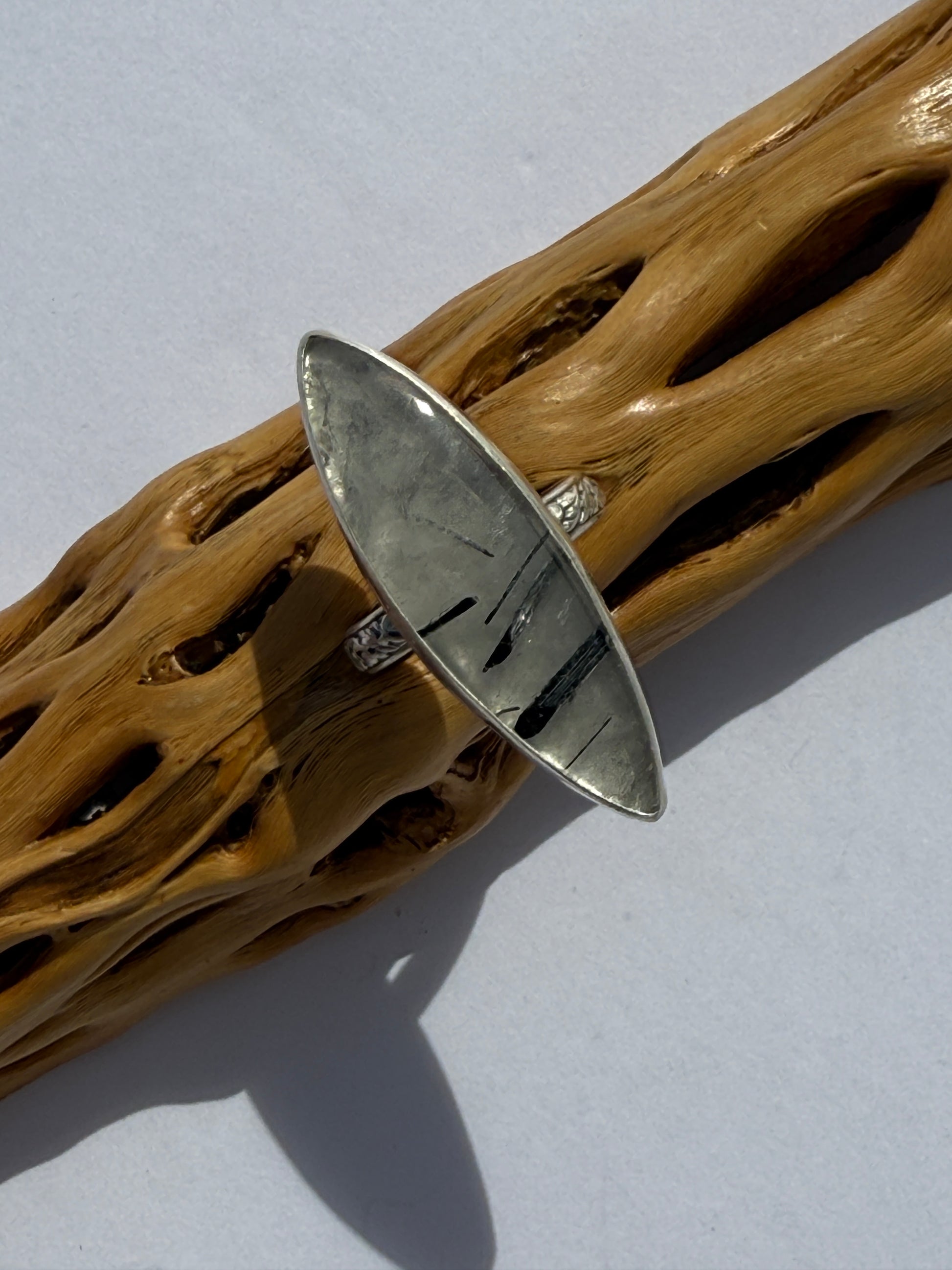 Earthbound Glow Ring: Sterling Silver & Black Tourmaline in Quartz - size 8
