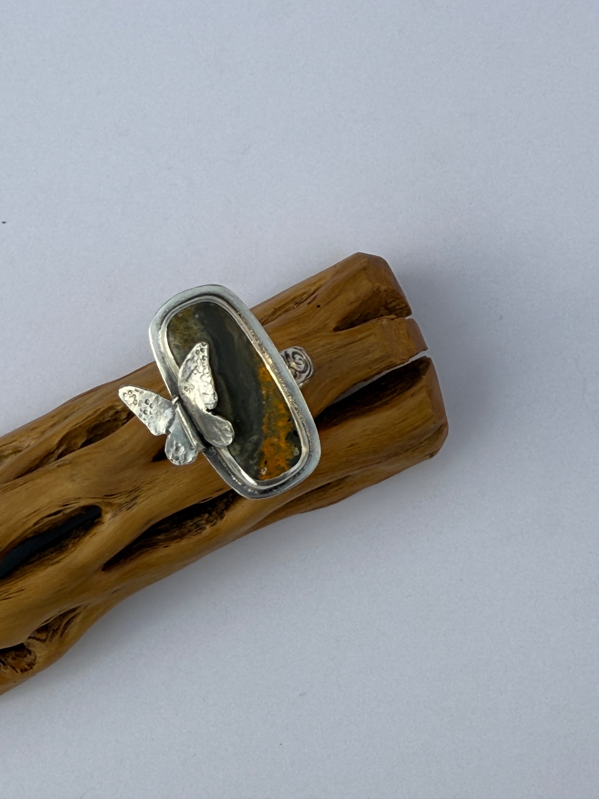 Sunlit Wings Ring - Sterling Silver & Bumblebee Jasper - size 9.75
