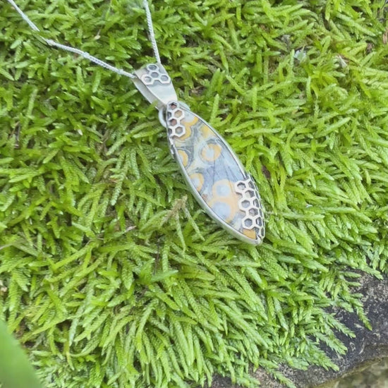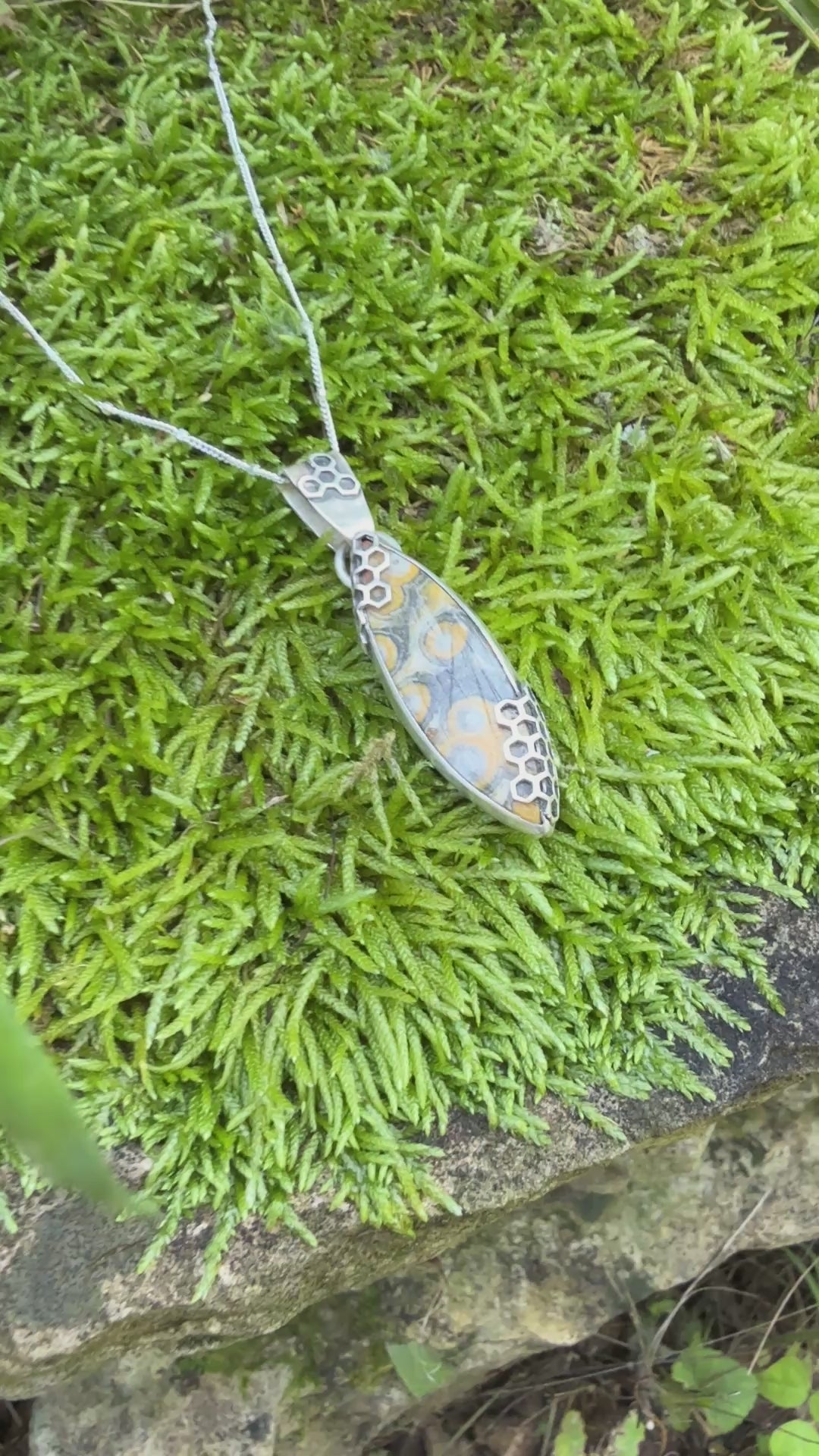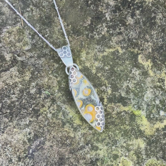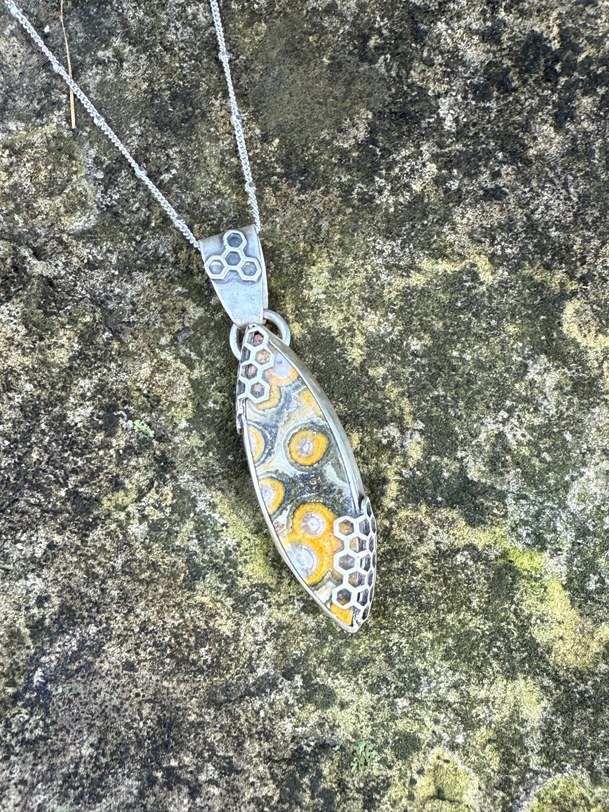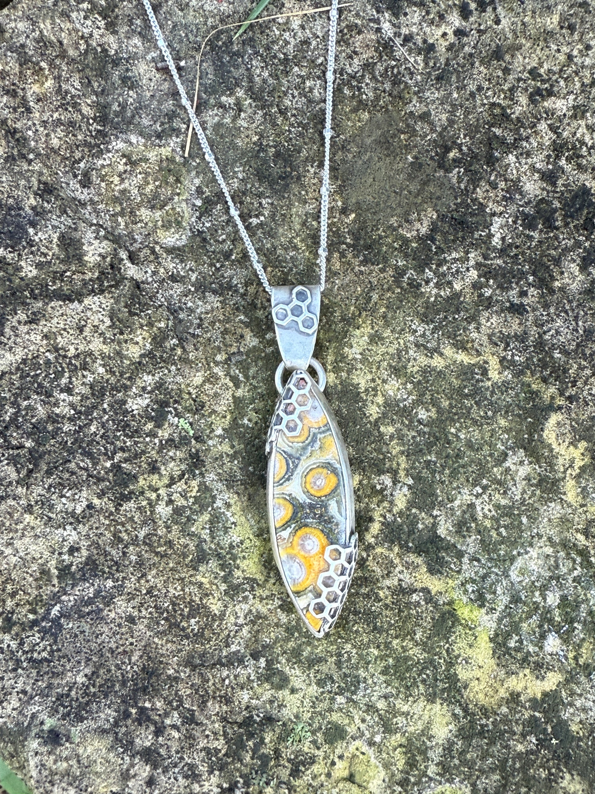 Honeyed Haven Necklace: Sterling Silver & Bumblebee Jasper Honeycomb Pendant
