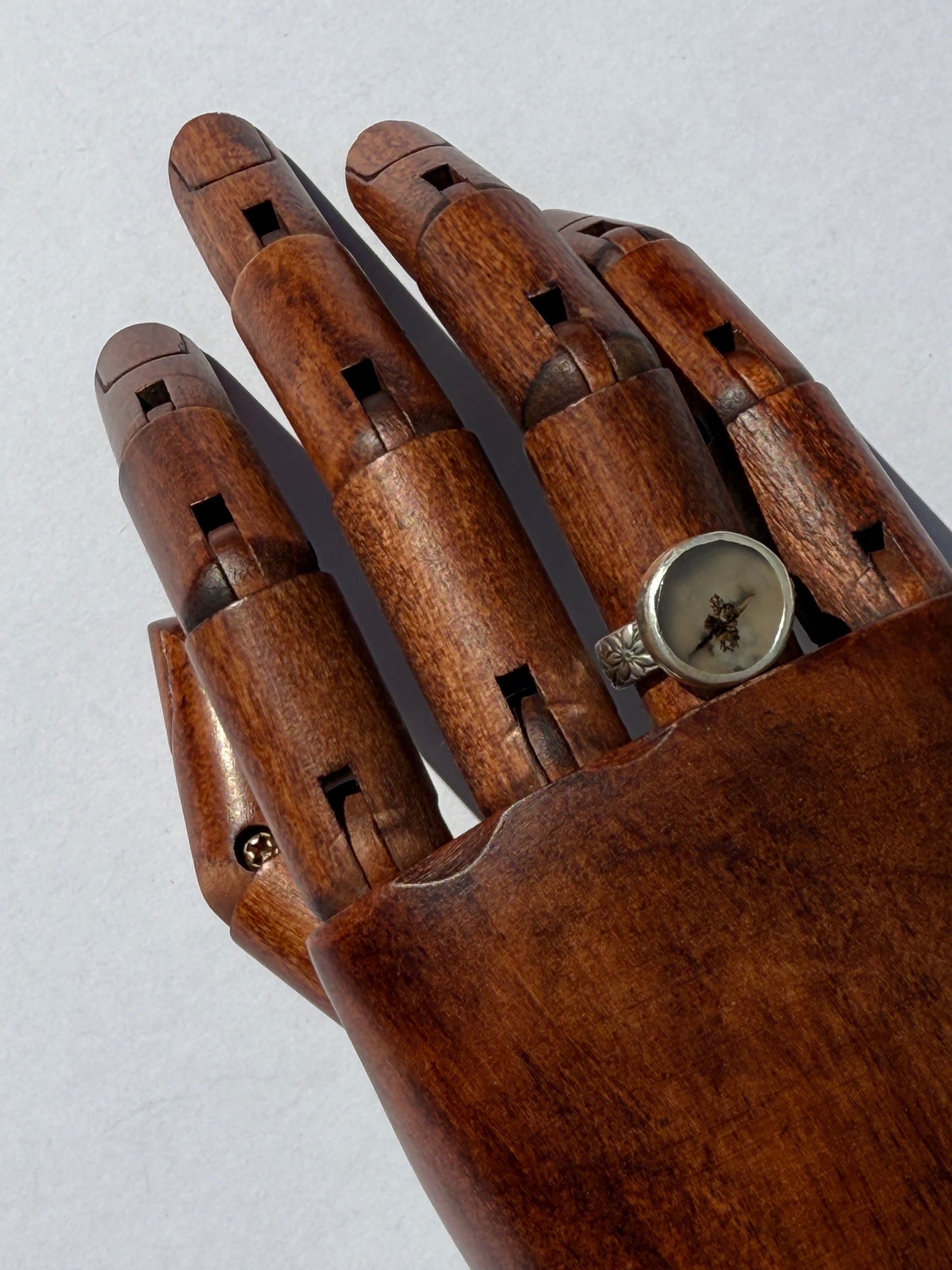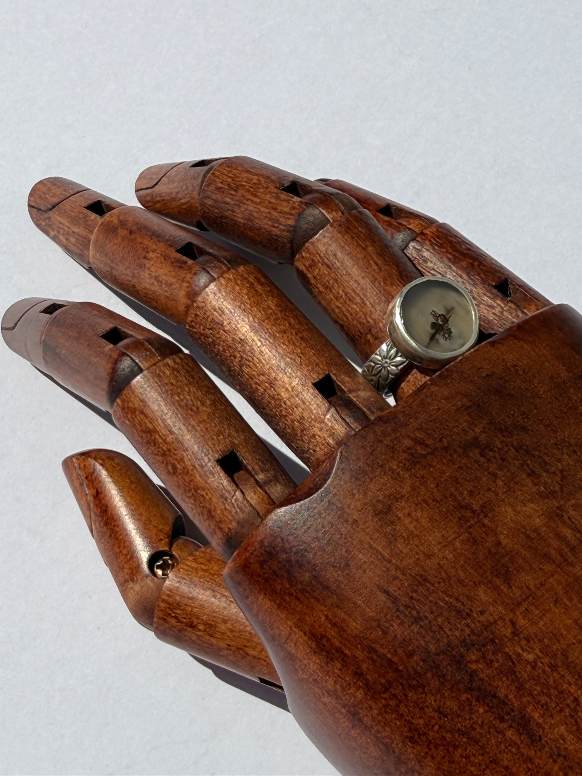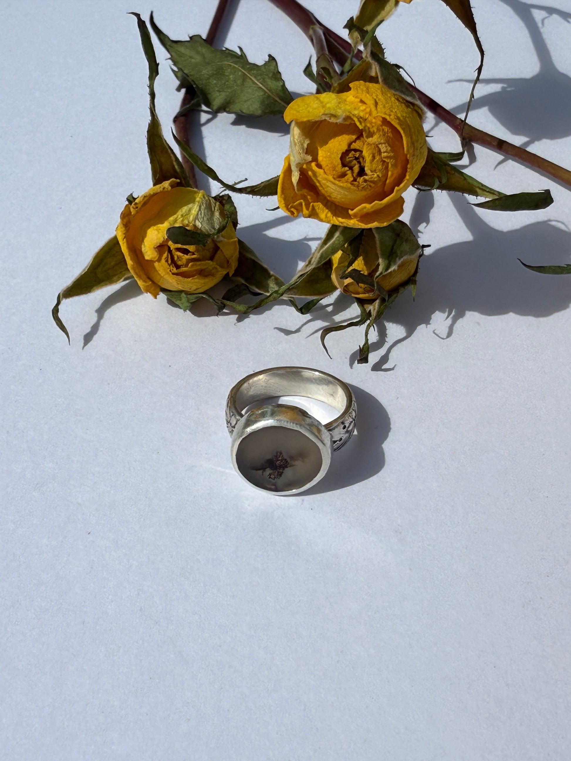 The Forest Circle Ring invites you to find calm and connection in nature’s subtle patterns. Featuring a circle of dendritic agate from Indonesia, its intricate, tree-like inclusions echo quiet woodland landscapes and the gentle flow of life. Handcrafted in sterling silver, the ring’s rounded, organic design encourages mindfulness, self-care, and appreciation for the small wonders that surround you. Wear it as a daily reminder to slow down, nurture yourself, and embrace the natural beauty in everyday moments.