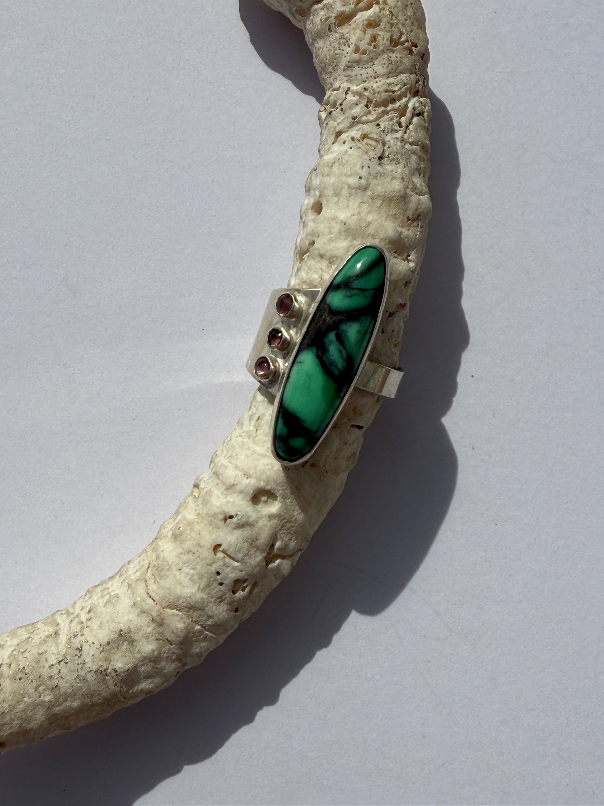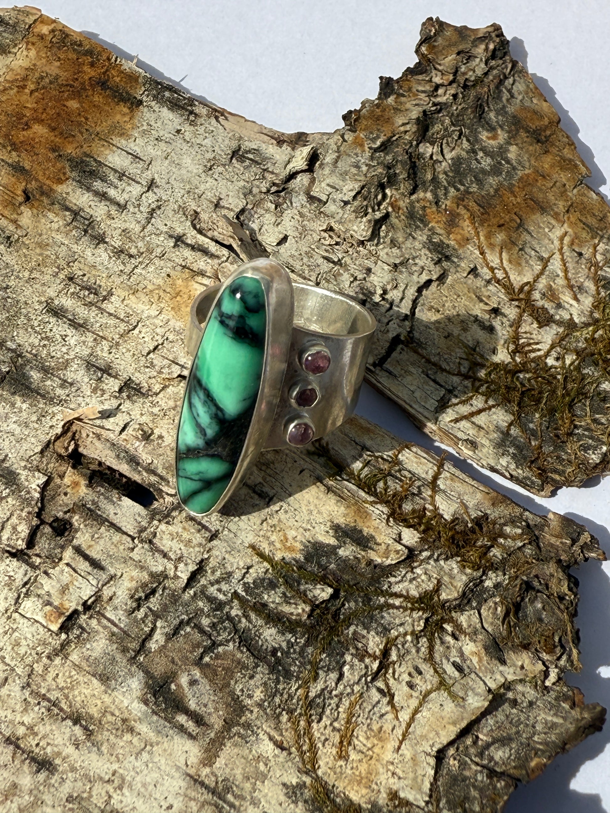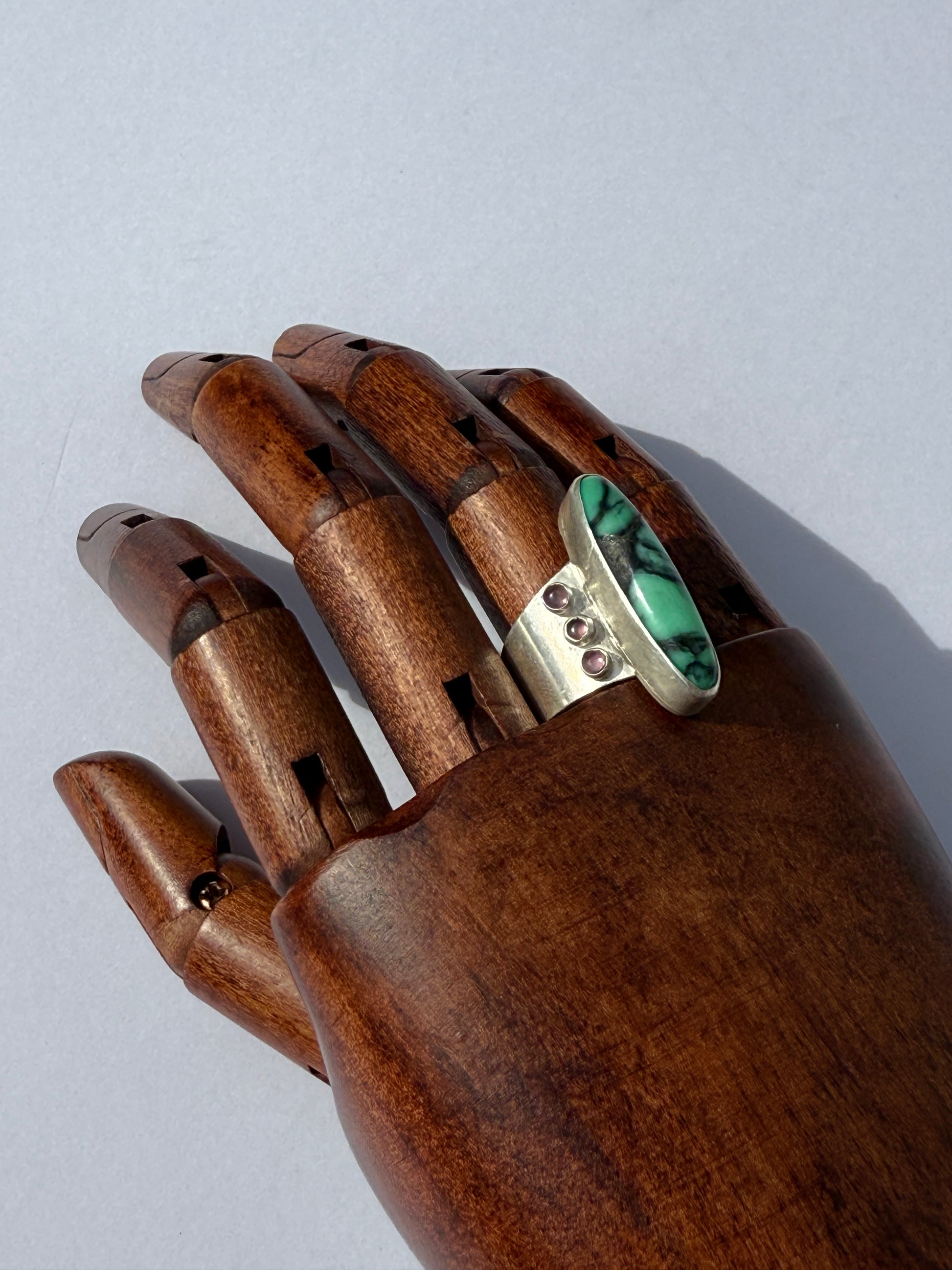 Blushing Oasis Ring - Desert Oasis Variscite & Pink Tourmaline - size 9.5