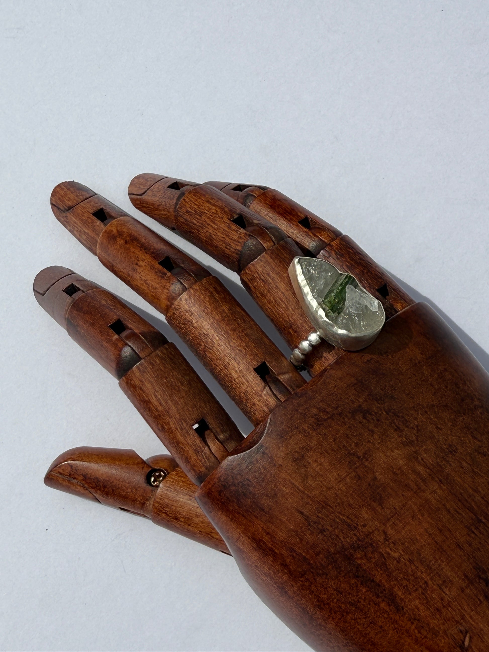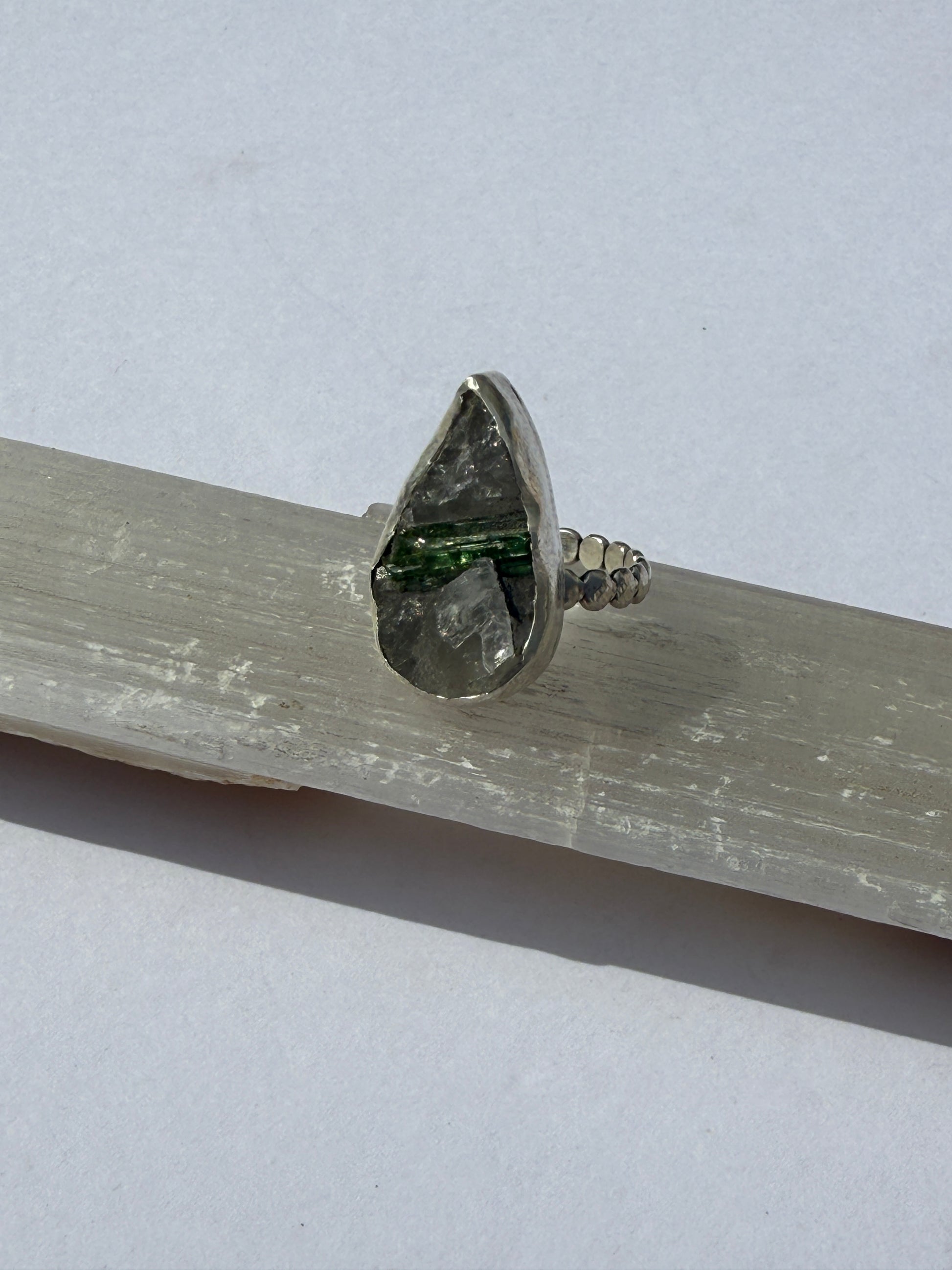 Wild Mountain Renewal Ring: Sterling Silver & Green Tourmaline in Quartz - size 8.5