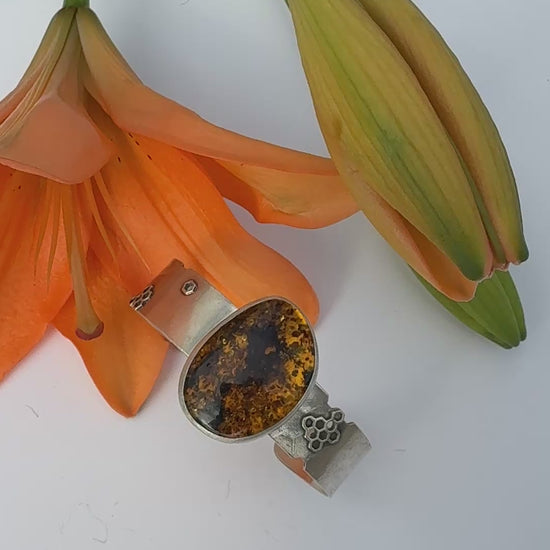 Sunlit Hive Cuff: Sterling Silver & Baltic Amber
