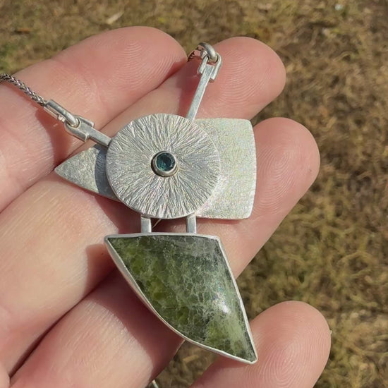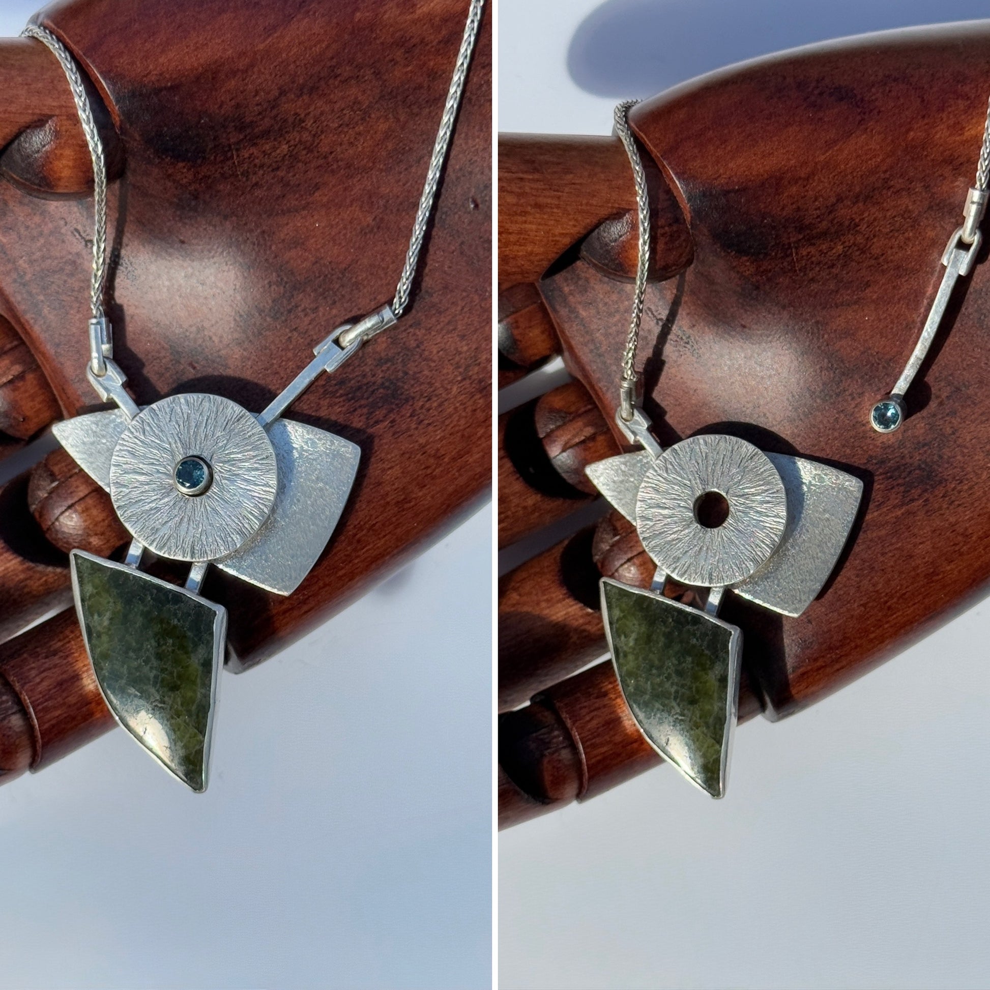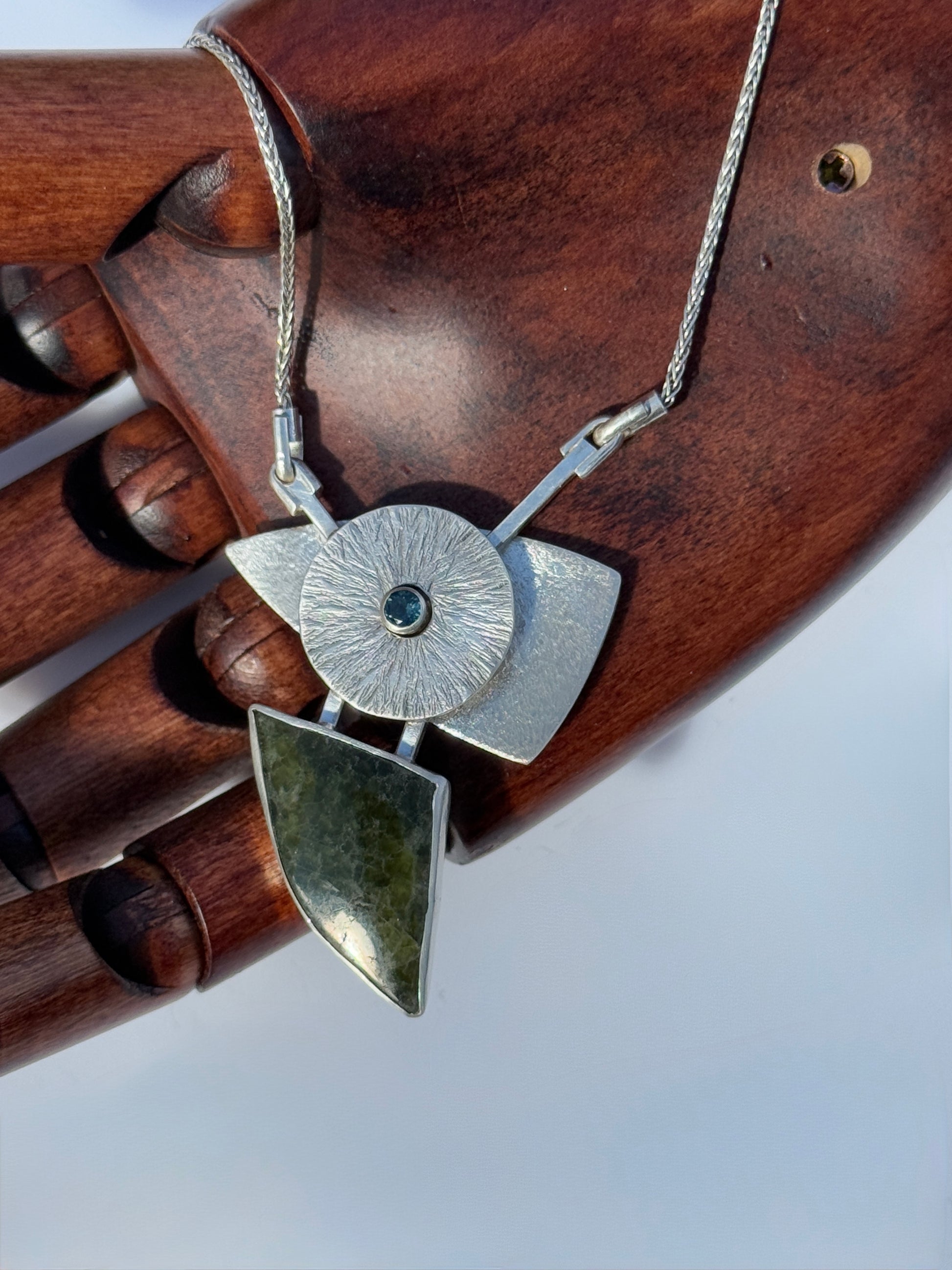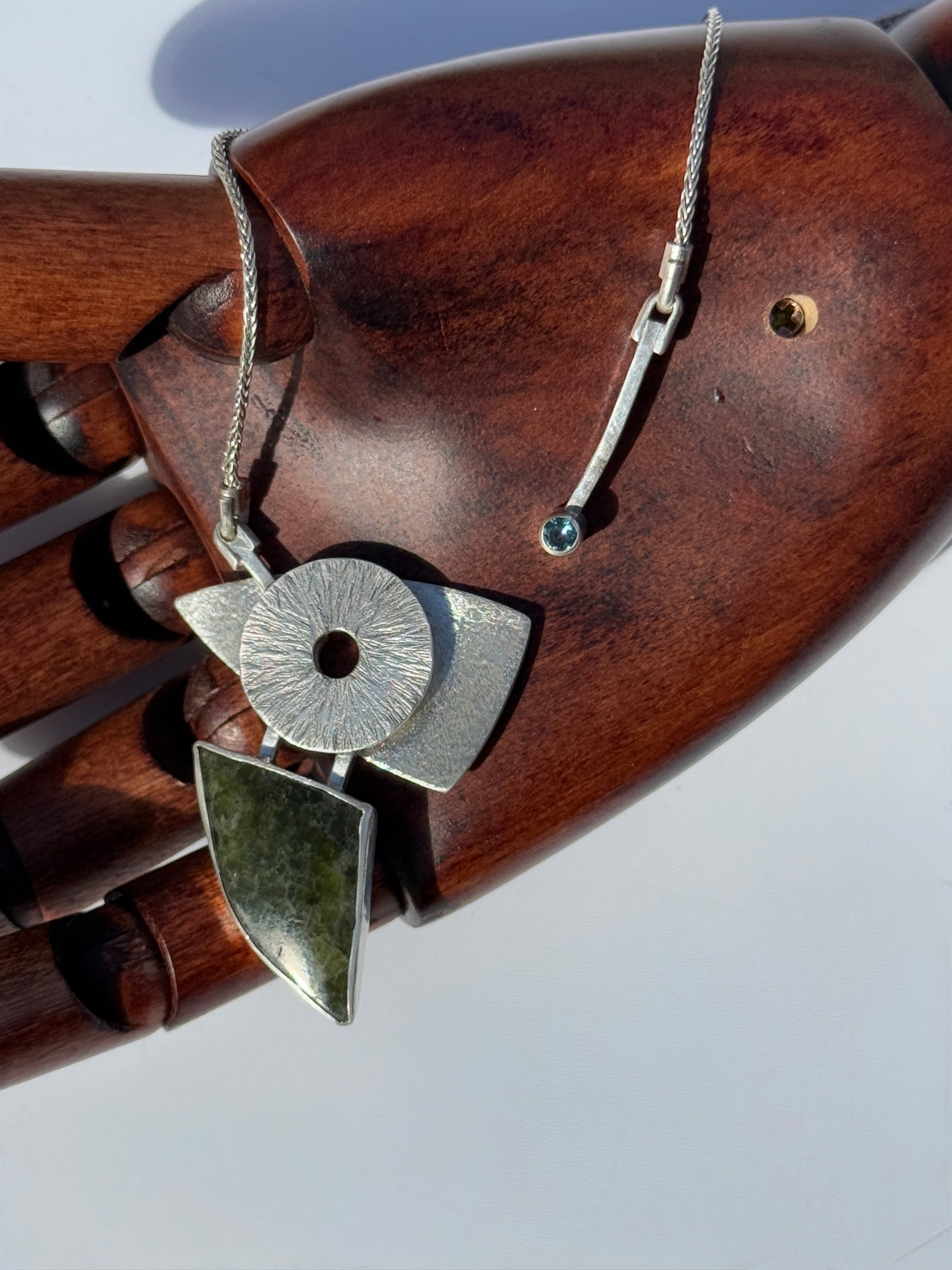 Mountain Waters Necklace: Sterling Silver, Jade & Montana Sapphire
