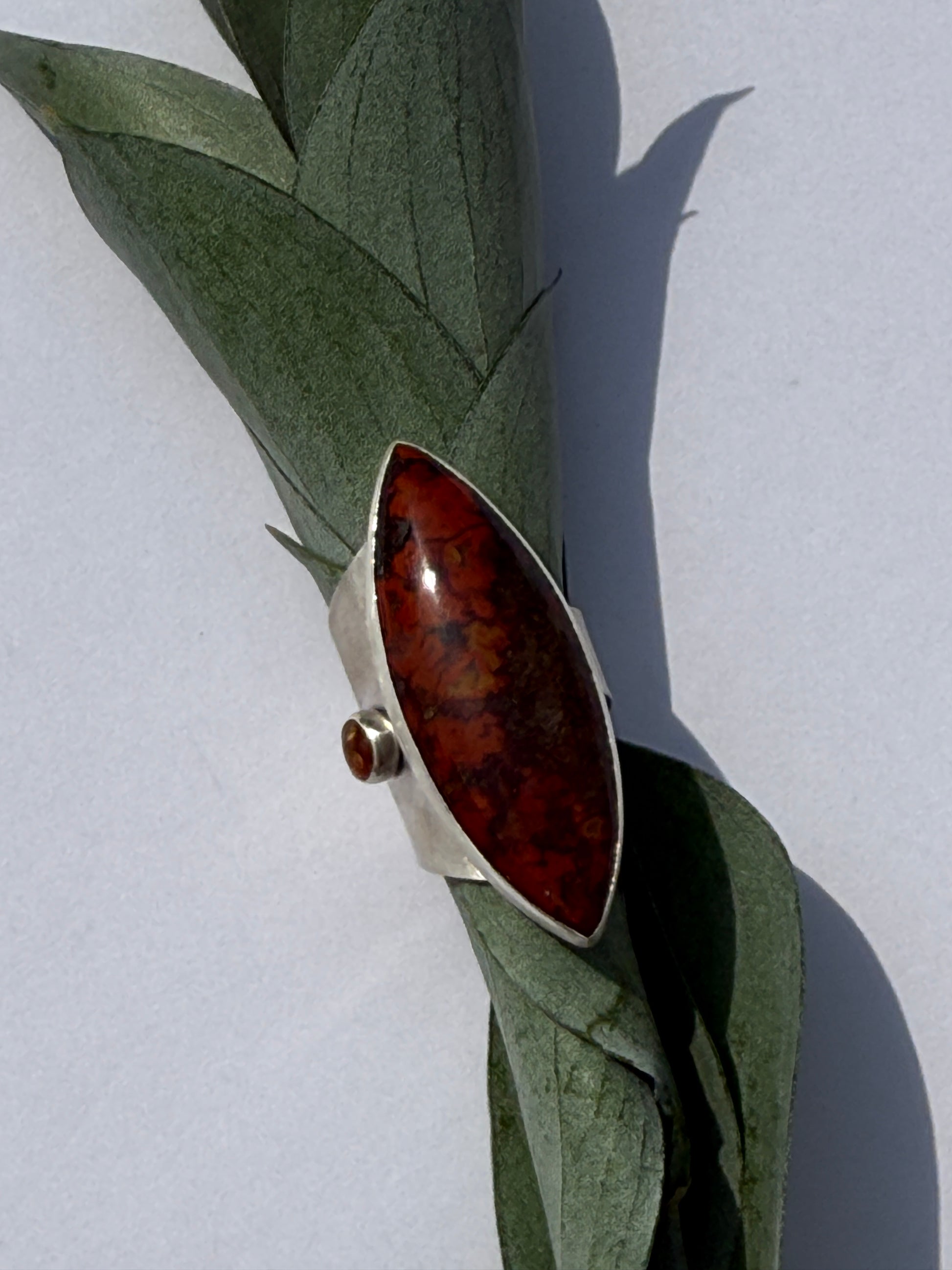 Golden Mesa Ring: Sterling Silver & Moroccan Seam Agate & Baltic Amber - size 5.5