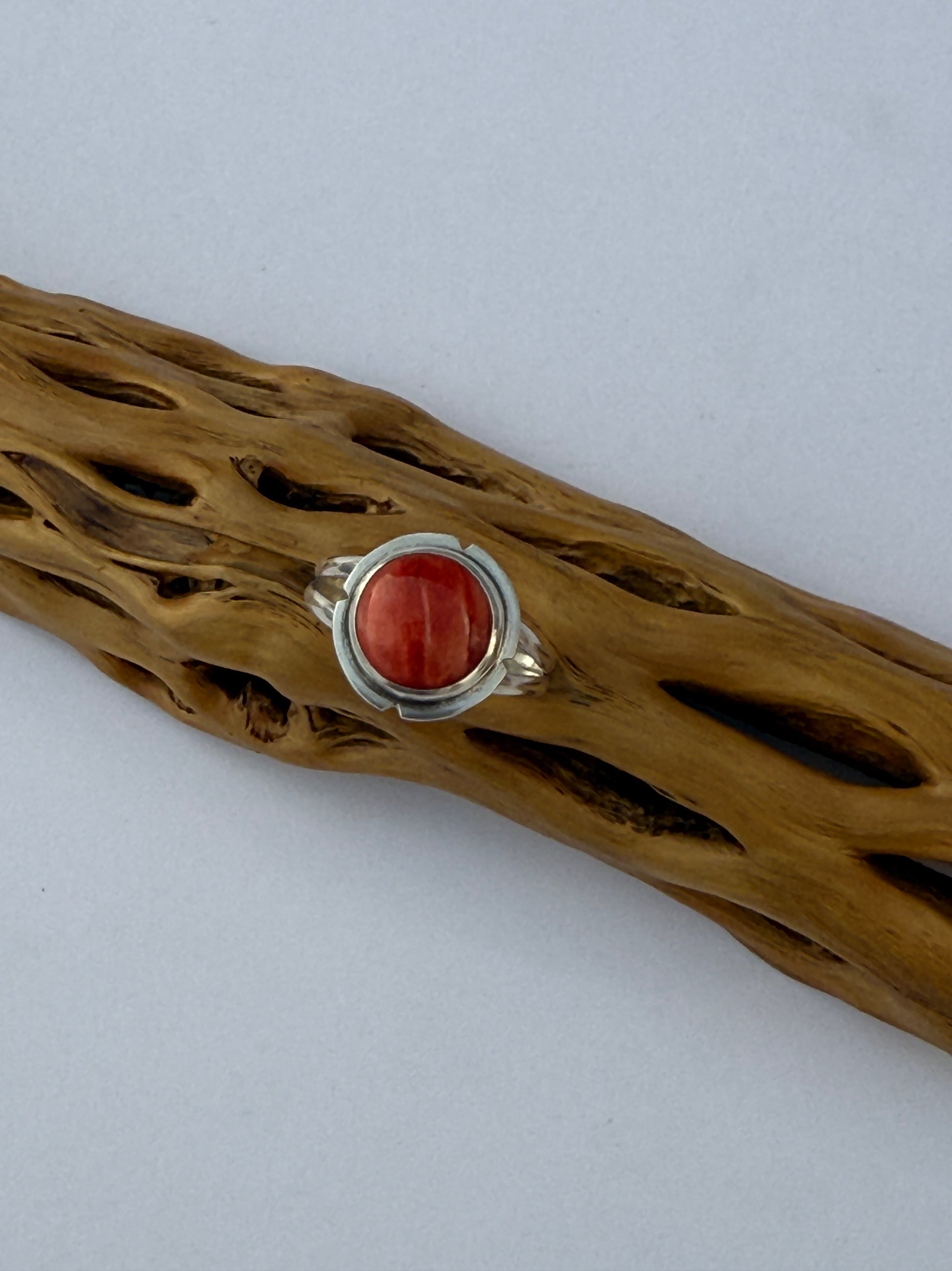 Sunset Ember Ring: Sterling Silver & Red Spiny Oyster - size 11