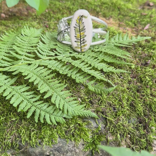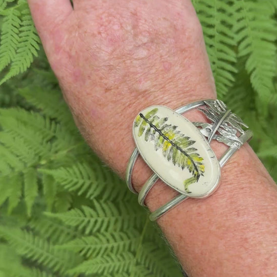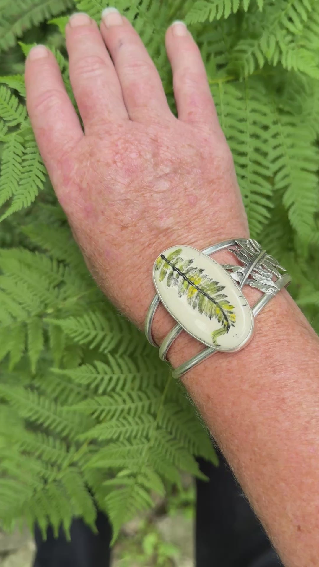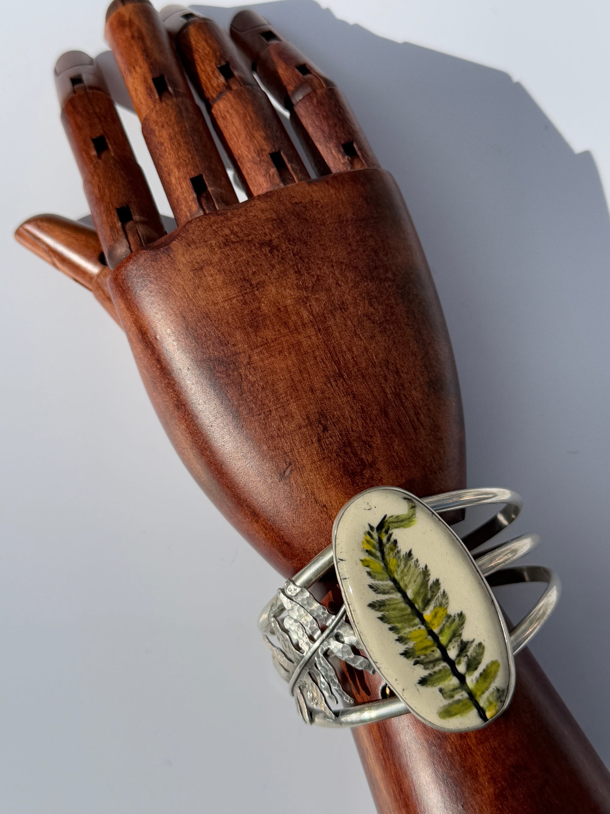 Sanctuary Cuff: Sterling Silver & Ceramic Sword Fern