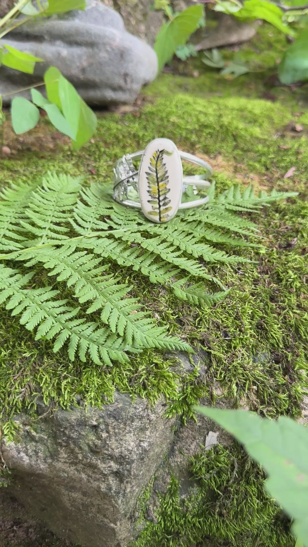 Fern fronds are among the oldest plants on Earth — symbols of resilience, quiet strength, and renewal. I carried that story into silver, hand-sawing delicate sword fern details across a bold ceramic cuff. This piece feels like a sanctuary you can wear — grounding, protective, and deeply tied to the forest. Strong enough to make a statement, yet organic enough to feel as if it grew straight from the earth.