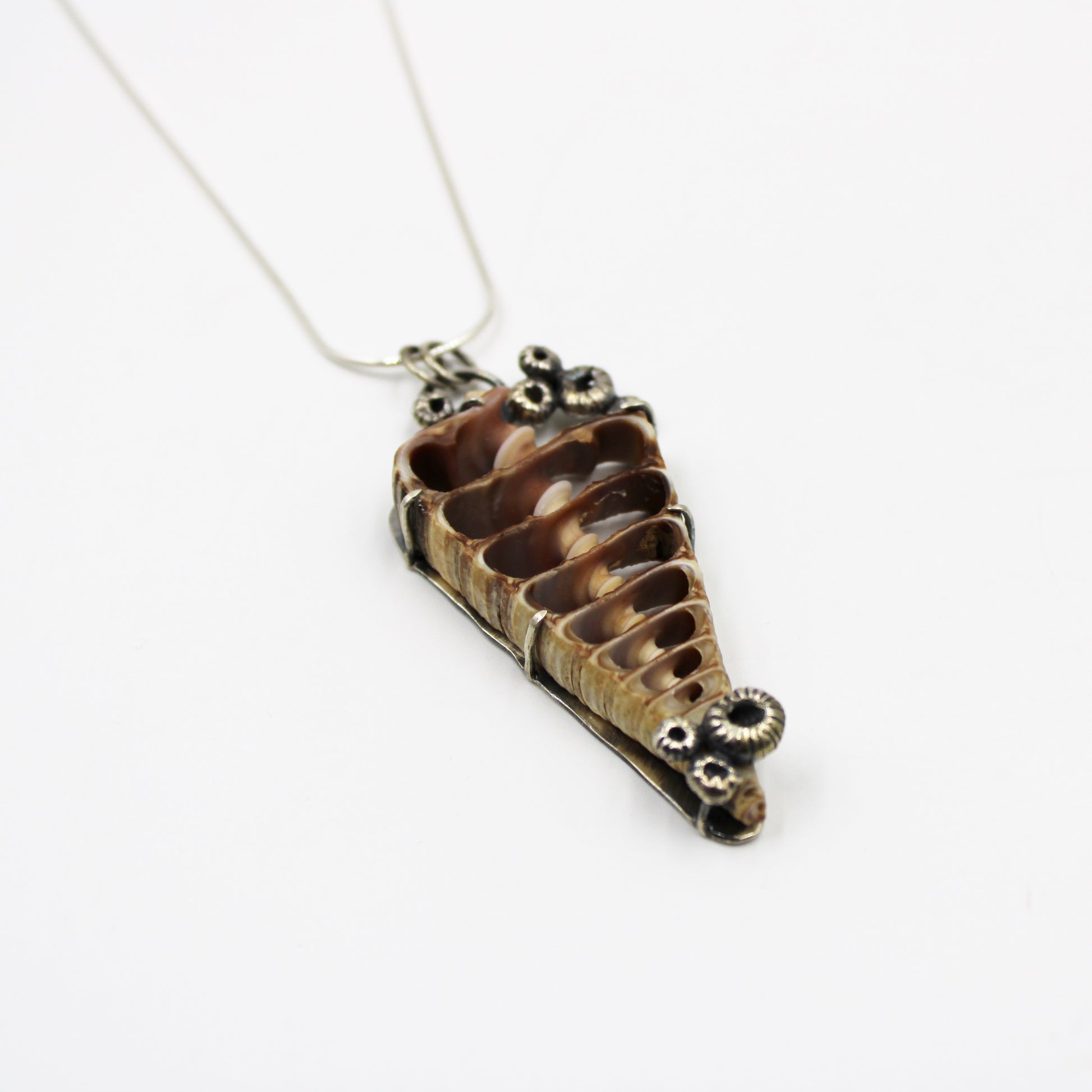 Tidekeeper Necklace: Sterling Silver & Spiral Shell Prong set with Barnacles
