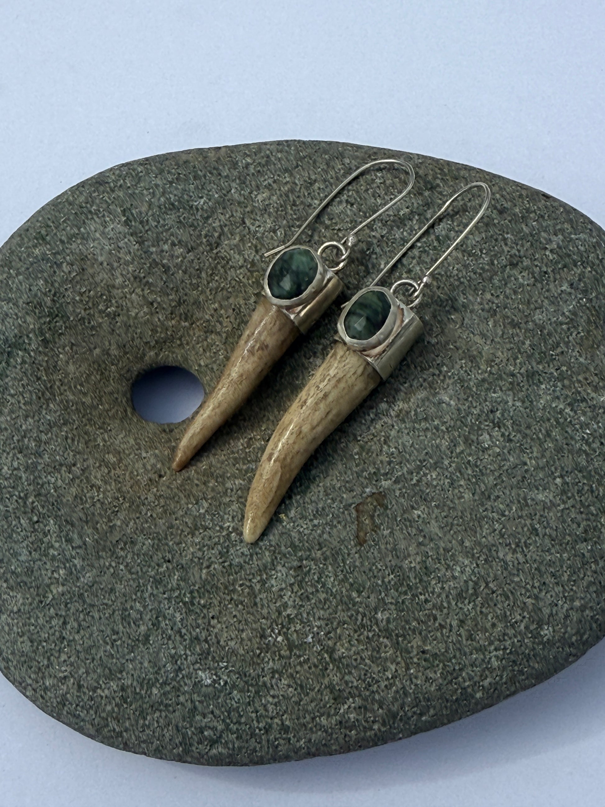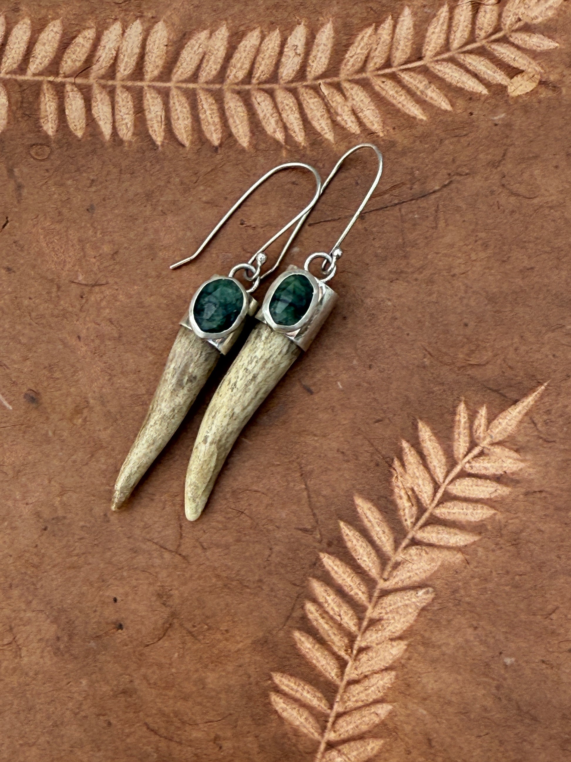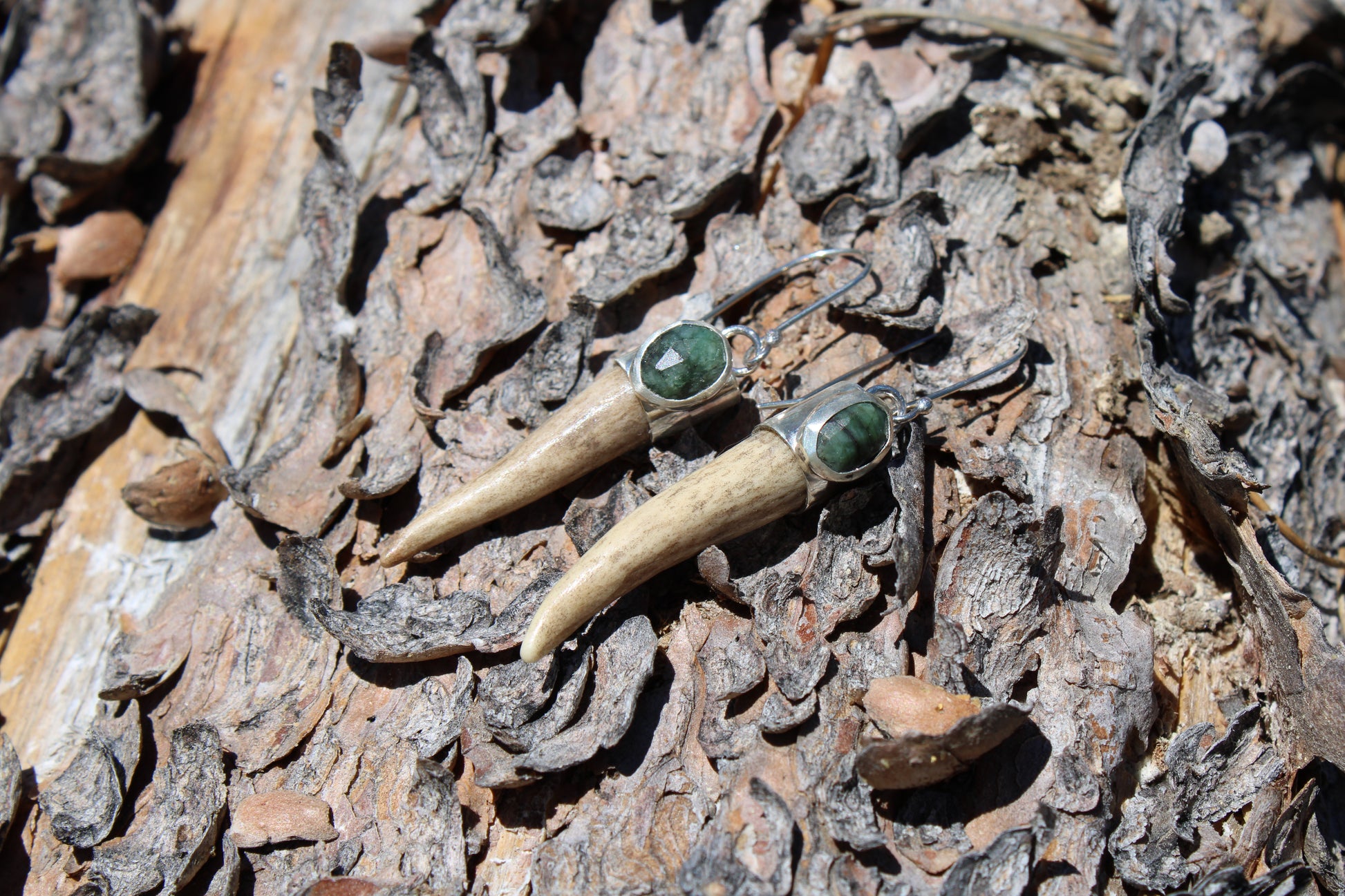 Inspired by the untamed beauty of the wilderness, these earrings honor the quiet strength and resilience of nature. Featuring naturally shed antler tines capped in sterling silver, each piece is a one-of-a-kind treasure. The addition of vibrant Sonoran lime turquoise evokes open skies and rolling landscapes, bringing a sense of grounding and connection. A perfect blend of rustic elegance and organic charm, these earrings are for those who carry the wild within them.