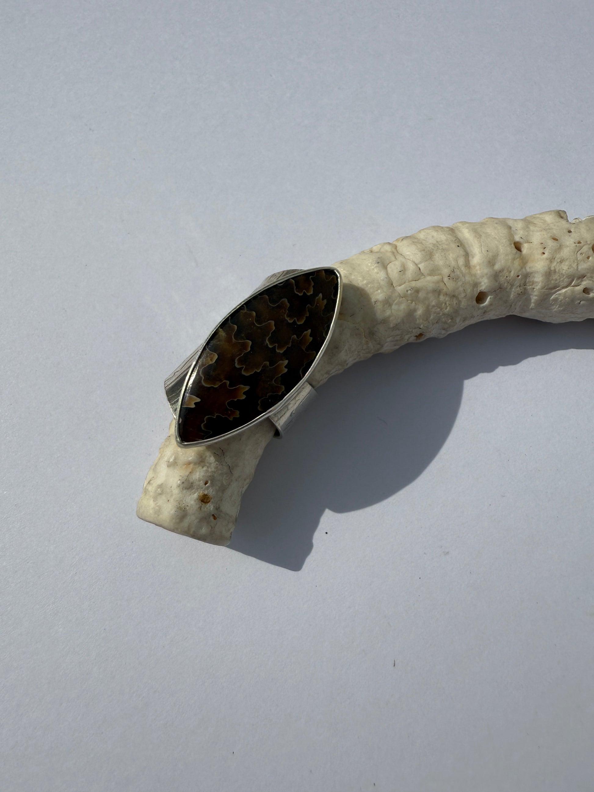 Ancient Wood Spiral Ring: Sterling Silver & Sutured Ammonite - size 7