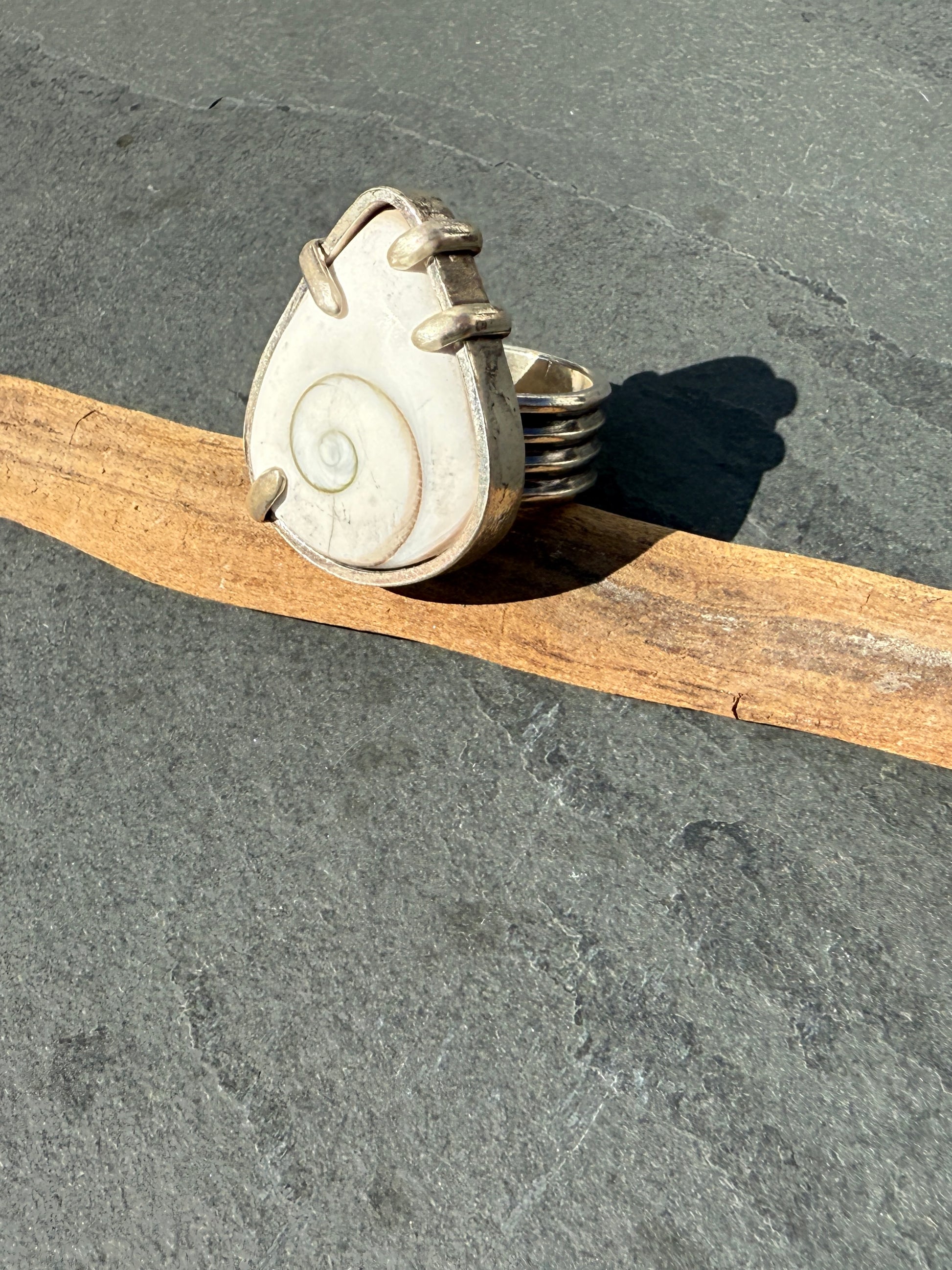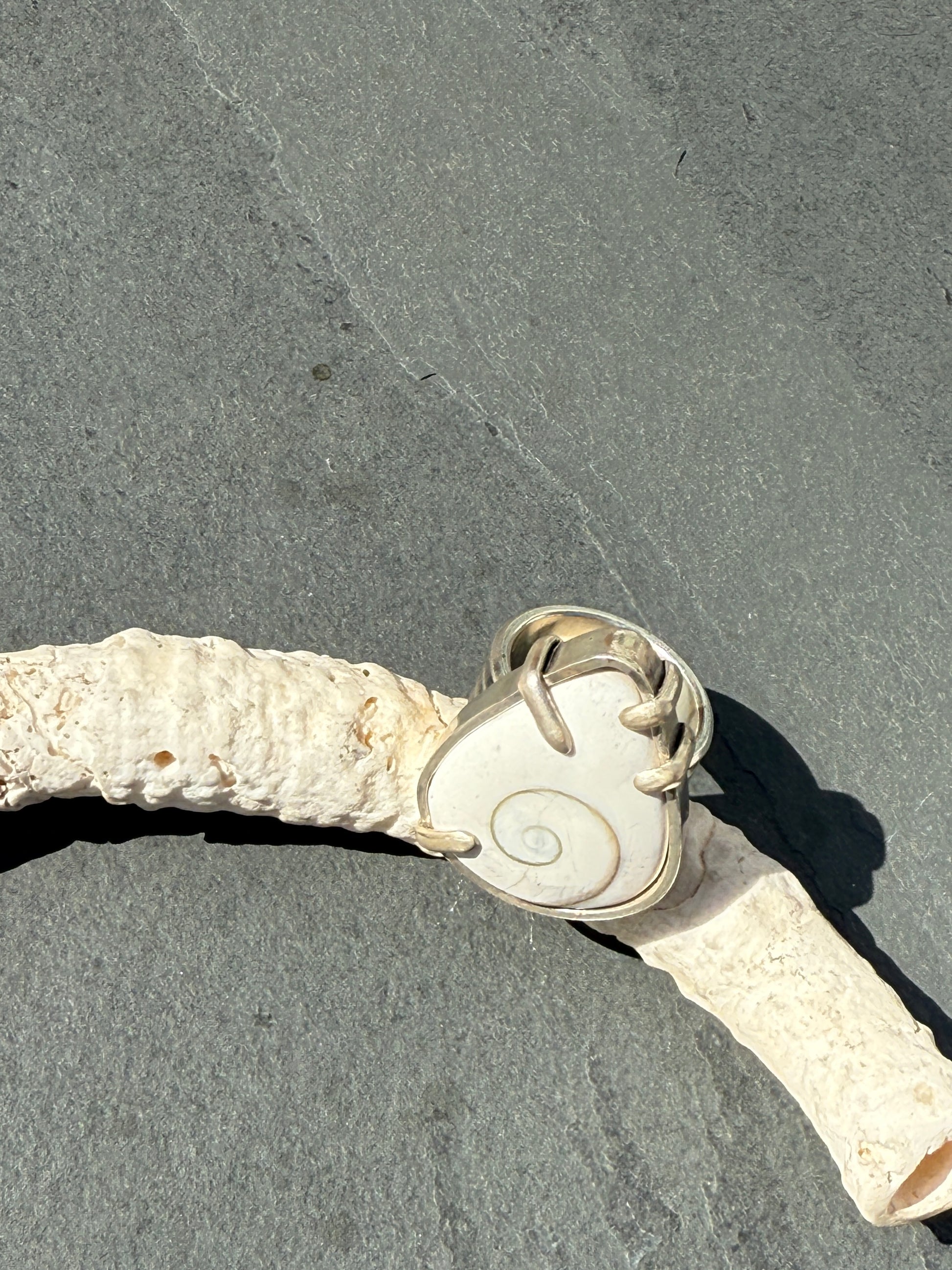 Tidal Spirit Ring: Sterling Silver & Shiva Shell - size 10.5