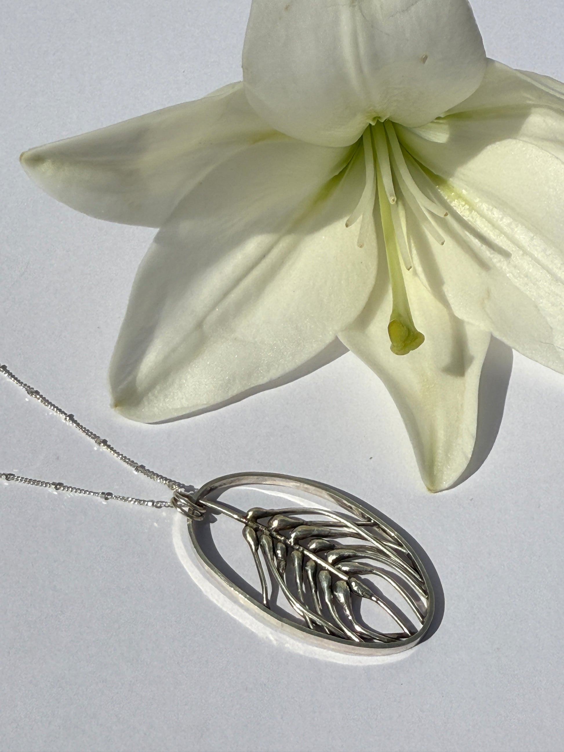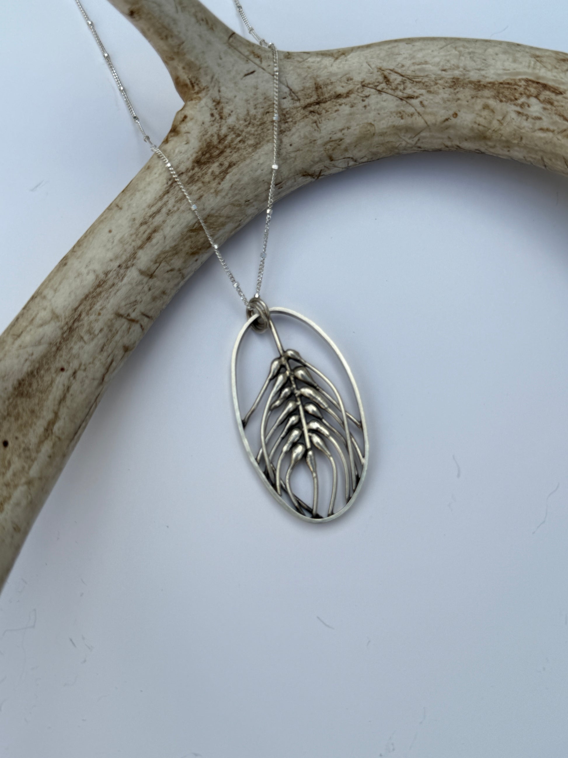 Abundant Harvest Necklace: Sterling Silver & Wheat Oval Pendant